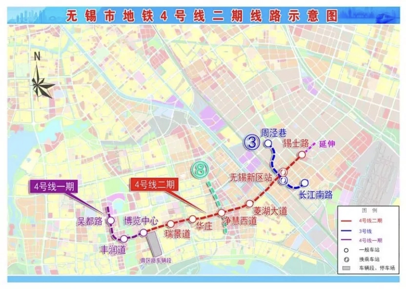 无锡地铁4号线二期工程,全长约8.3公里,举座呈东西向,主要沿震泽路、新华路敷设。
